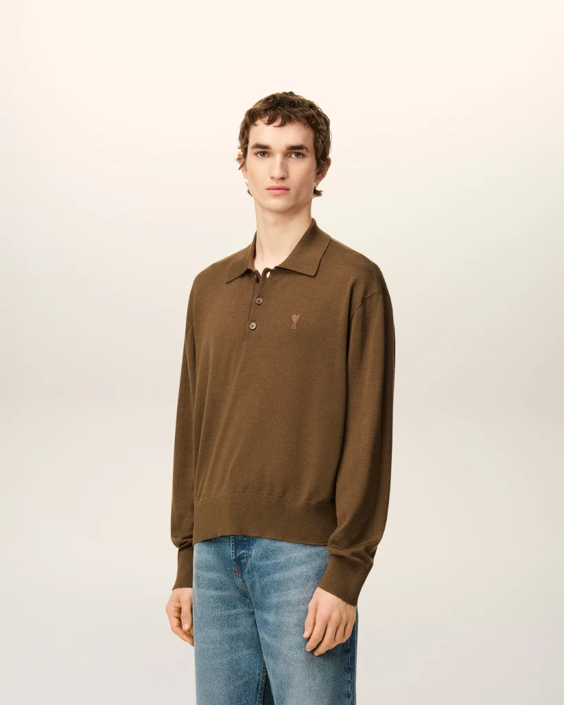 BROWN WOOL AMI DE COEUR POLO