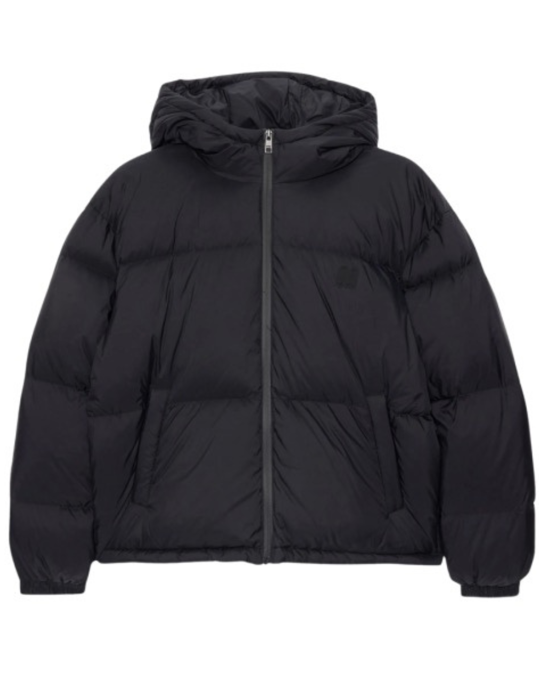 Short black down jacket in ripstop nylon
