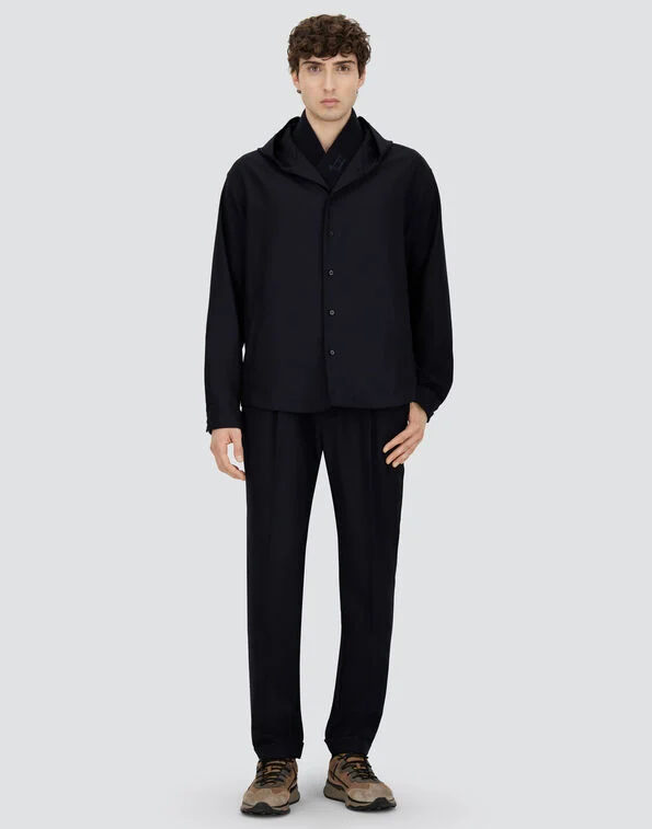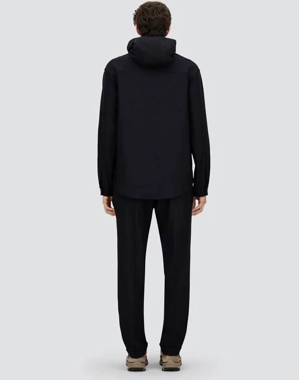 Shacket in wool-blend gabardine with very fluid and stretchy texture.