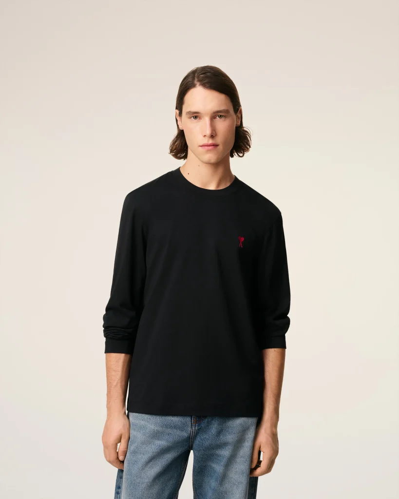 BLACK COTTON AMI DE COEUR LONG SLEEVES T-SHIRT
