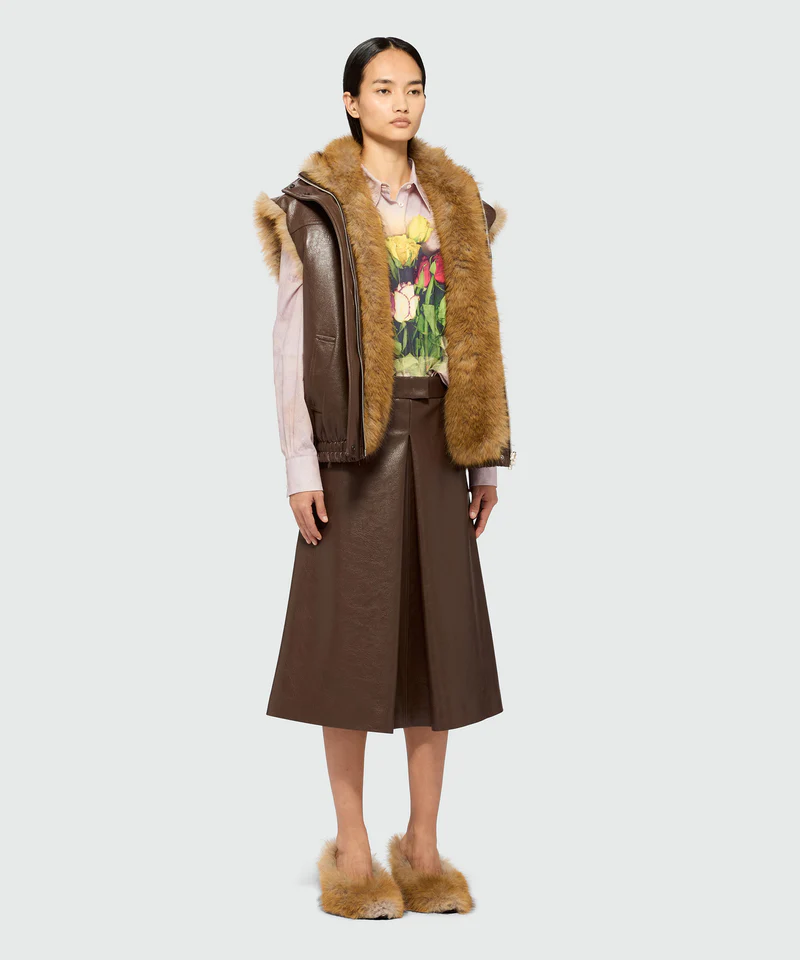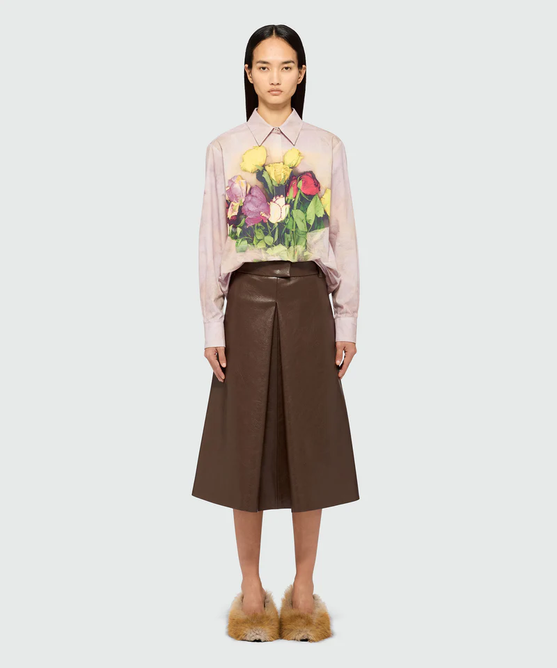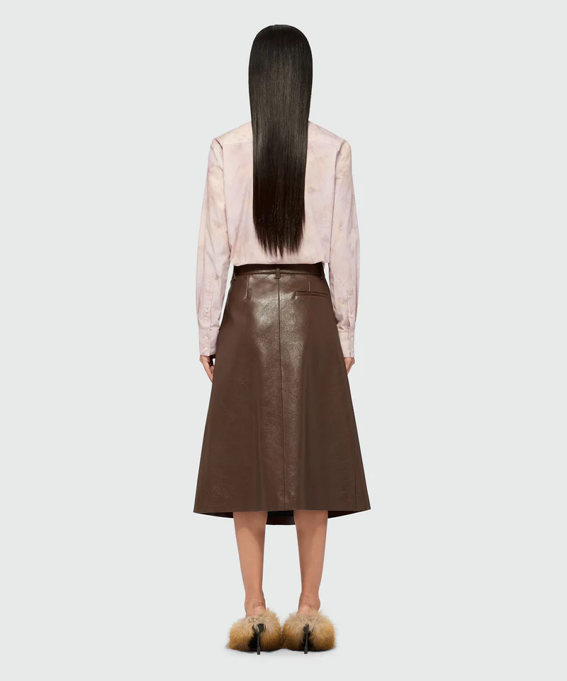 Brown hammered faux leather midi skirt