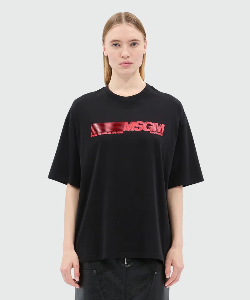 Black jersey T-shirt with MSGM print